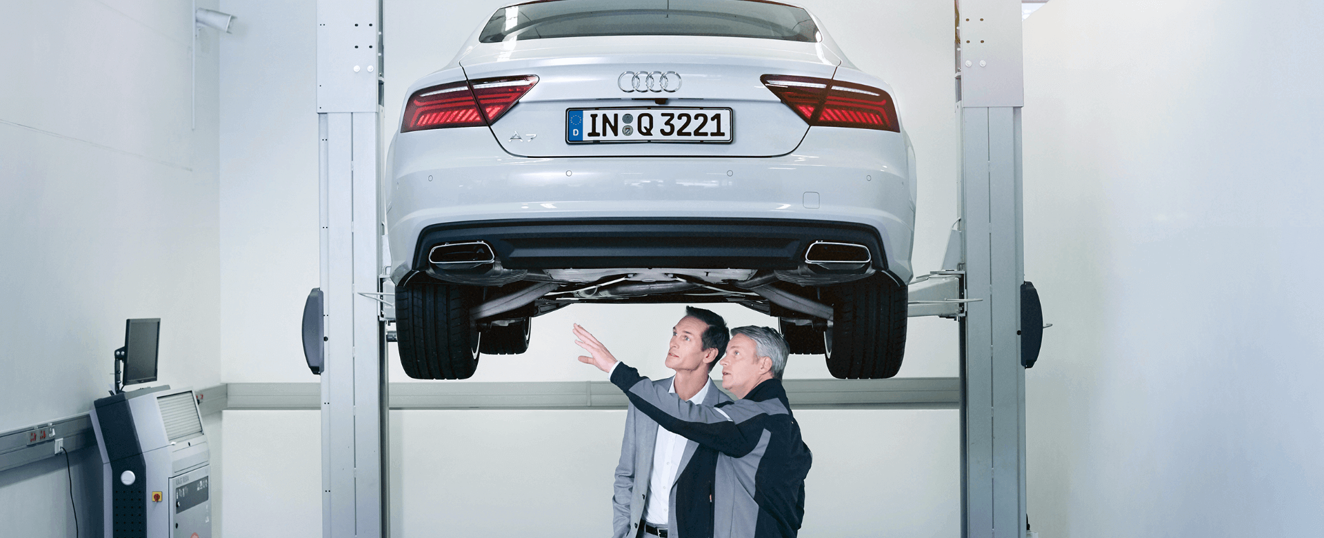 A garantia está condicionada à realização dos serviços de manutenção, reparos e regulagens em uma Concessionária Audi de sua preferência, exatamente dentro dos limites de quilometragem ou de tempo previstos no Termo de Garantia e Plano de Manutenção Audi de seu veículo.